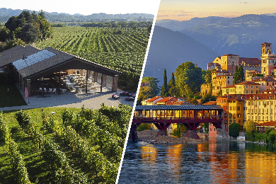 素敵な葡萄畑とテイスティングを楽しんだ後は、「グラッパ」という北イタリアの蒸留酒発祥の地バッサーノ・デル・グラッパに立ち寄ります。可愛い街を散策し、最後は「バーカロ」というヴェネツィア周辺ならではの居酒屋での軽食も含まれています!興味があればグラッパの博物館もあり、試飲もできます♪北イタリアのグルメと美しい景色を一日で大満喫できるツアーです!専用車で優雅な旅を!
